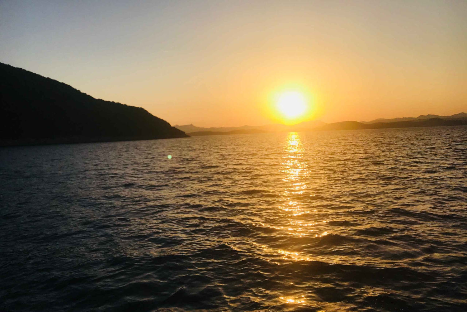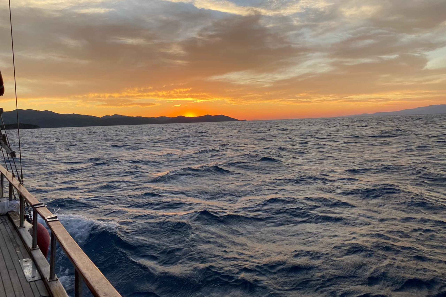 Nuestra excursión privada en yate al atardecer combina todo lo necesario para una velada ultrarromántica. Pasa un rato agradable con tus seres queridos mientras contemplas la hermosa puesta de sol sobre el mar de Agean. Esta experiencia privada es ideal para celebrar una ocasión especial o simplemente para pasar una cena romántica a bordo. Nuestra tripulación se reunirá contigo en el puerto y os pondréis en marcha. La primera parada será en una bahía apartada para darte un baño mientras nuestra tripulación te prepara una cena recién hecha. Mientras disfrutas de la cena a bordo con una copa de vino, podrás contemplar la hermosa puesta de sol. Tras la cena, pasarás junto al castillo y volverás al puerto, donde nuestro capitán te dejará a salvo.Includes