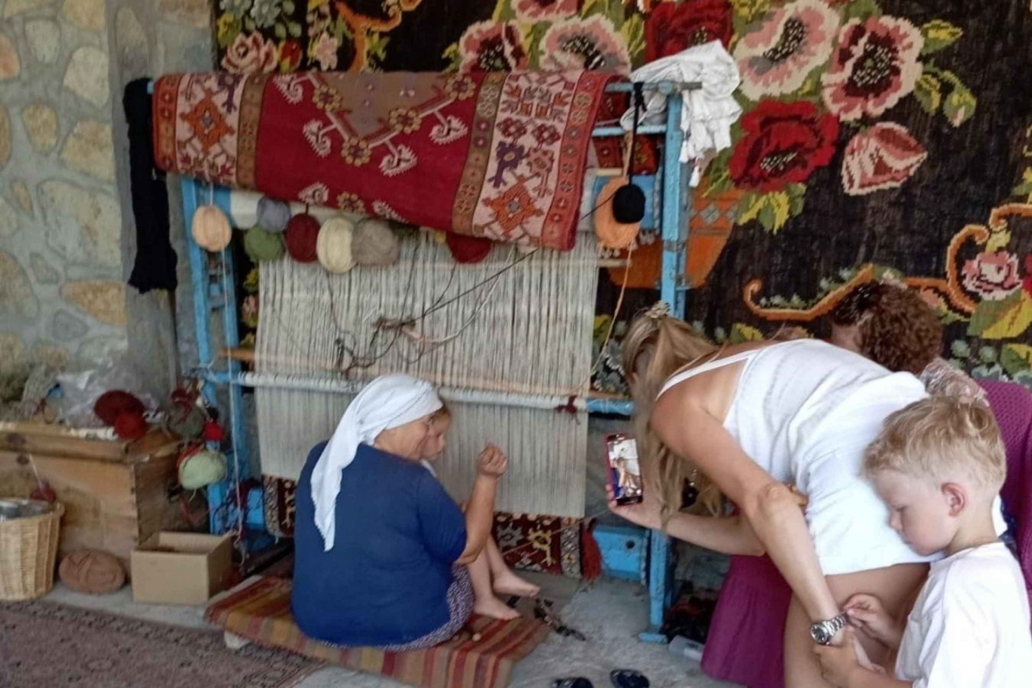 Begin your adventure with a visit to a traditional village where you'll meet friendly locals and learn about their customs and daily lives. Wander through narrow streets lined with stone houses and witness the stunning beauty of Bodrum's untouched nature. Explore a local mosque, marvel at centuries-old water reservoirs, and step inside a preserved village house. Immerse yourself in the fascinating culture of carpet weaving as you visit a local family engaged in this traditional craft. Learn about the history and significance of carpet weaving in the region, and observe the intricate processes involved in creating beautiful handmade carpets. Next, embark on a delightful journey to the Garova Vineyard, a renowned vineyard nestled amidst picturesque landscapes. Along the way, your knowledgeable guide will provide fascinating insights into the history and traditions of winemaking in Bodrum. Upon arrival, you'll be warmly welcomed by the vineyard owner, whose family has been living here for 250 years. Hear the story of this place and learn about the grape varieties used in wine production. Enjoy breathtaking views of the vineyards from the terrace as you indulge in a tranquil wine-tasting experience. Explore the vineyard's facilities and learn about the meticulous processes involved in crafting exceptional wines. From grape cultivation to aging, gain a deeper understanding of winemaking. Besides wine, savor delicious, eco-friendly village olives and cheese, thoughtfully paired to enhance your tasting experience. Join us on the Bodrum Village Charm & Wine Delight Tour for an unforgettable journey through tradition and taste. Embrace the beauty of Bodrum's countryside, and let the flavors and stories linger long after the tour concludes.Includes